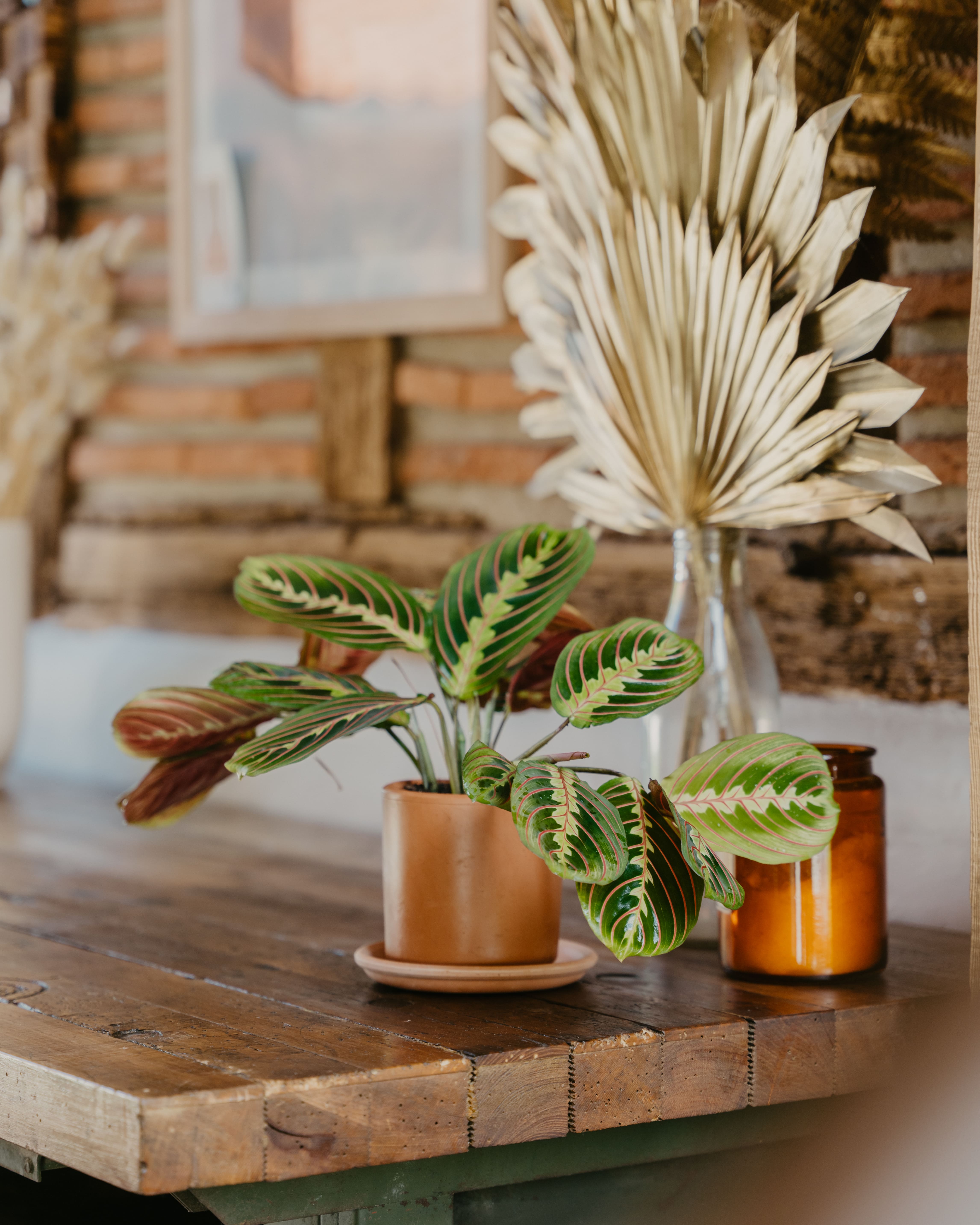 À l’Airial du Branasse, l’aménagement intérieur a été pensé pour prolonger la sensation de nature et d’authenticité propre au lieu. Des plantes comme le Strelitzia, l’Alocasia ou encore la Tradescantia apportent du relief, de la couleur et de la douceur aux espaces de vie. Chaque détail a été soigneusement réfléchi : le choix des espèces, leur emplacement, ainsi que l’association avec les poteries artisanales Goicoecha, qui renforcent le caractère chaleureux et naturel de l’ensemble. Cet aménagement invite à ralentir, à se sentir bien, dans un intérieur vivant, apaisant et en harmonie avec l’esprit de l’airial.