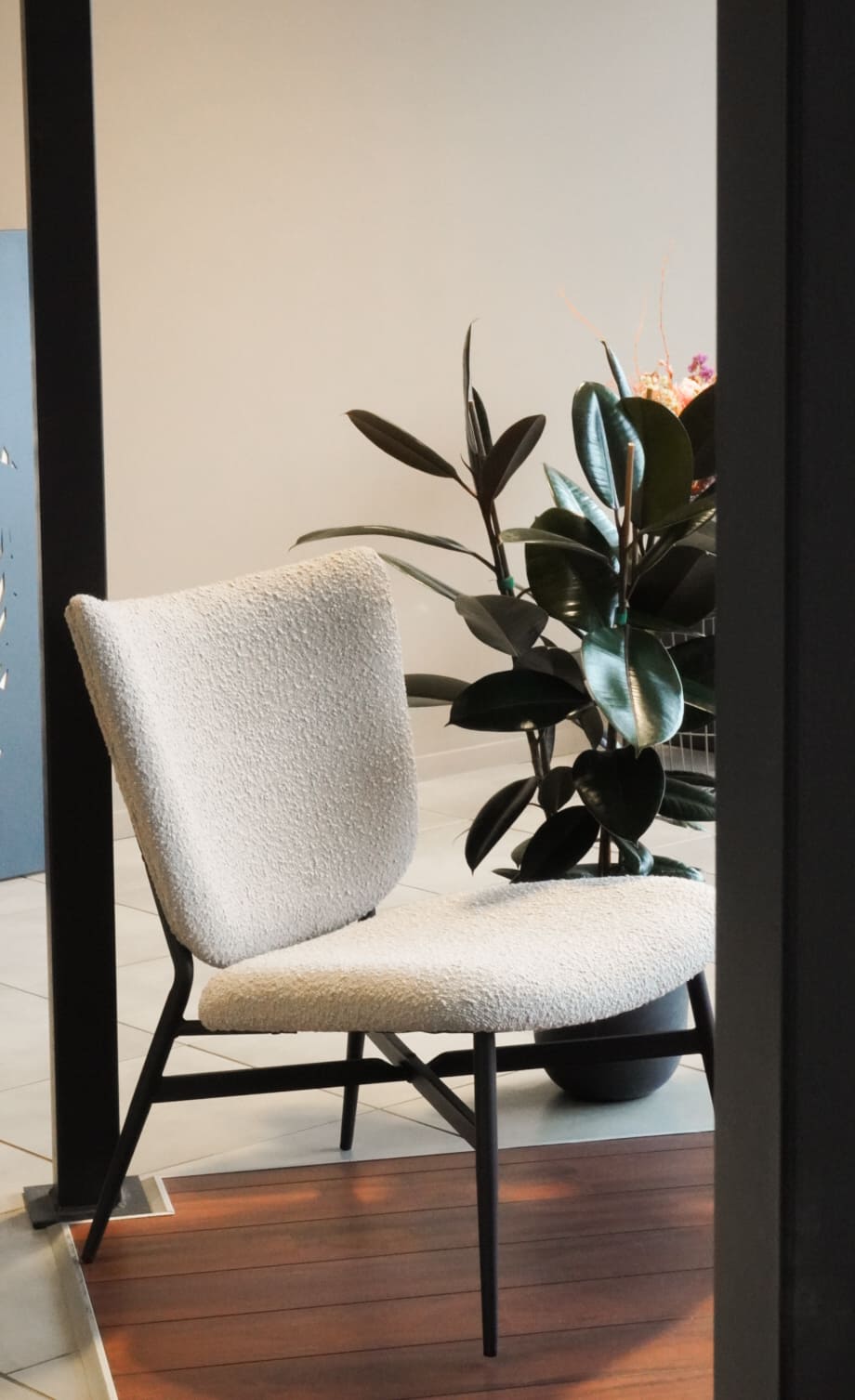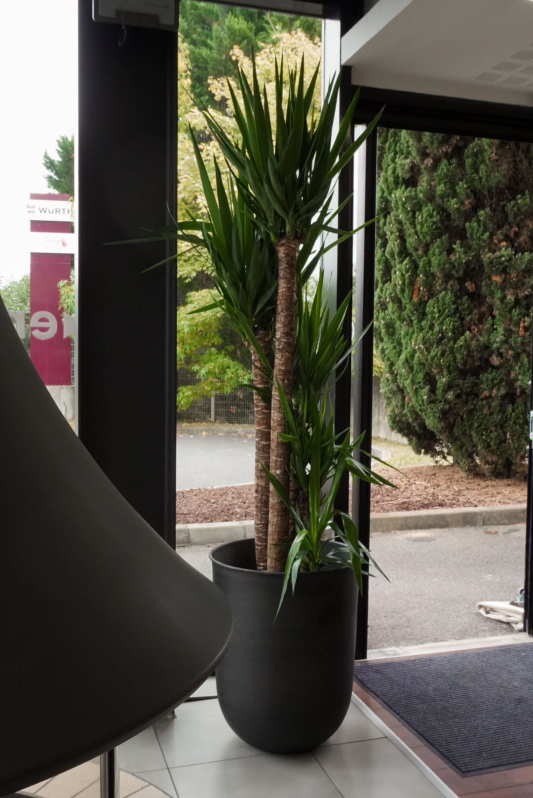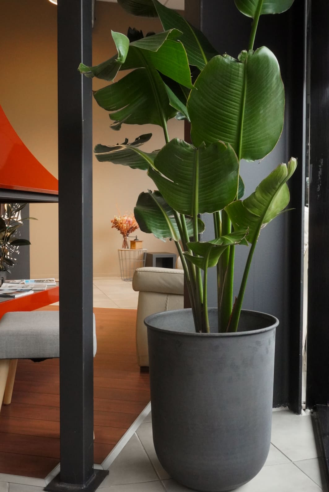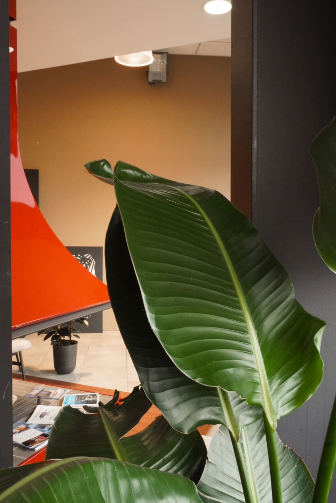 Un projet marquant pour Leaf, autour d’un véritable défi : faire cohabiter le feu, la chaleur… et le végétal. L’Atelier du Feu, showroom de poêles à bois et cheminées, présentait une ambiance très minérale, presque industrielle. Métal, lignes brutes, teintes froides… un univers cohérent avec le produit, mais qui pouvait sembler peu accueillant au premier regard. L’objectif était clair : rééquilibrer cette atmosphère en apportant de la chaleur visuelle, de la vie et créer un espace plus engageant, aussi bien de l’intérieur que depuis l’extérieur. Le végétal a été pensé comme un contraste subtil, capable d’adoucir les matières, de casser la rigidité des lignes et d’attirer naturellement le regard des passants. Depuis la rue, les compositions viennent capter l’attention et donner envie d’entrer. À l’intérieur, les plantes structurent l’espace, accompagnent le parcours client et créent une ambiance plus douce, plus vivante, sans dénaturer l’identité du lieu. Un projet autour d’un vrai défi : faire dialoguer le feu et le végétal, pour créer un équilibre juste entre caractère et accueil.